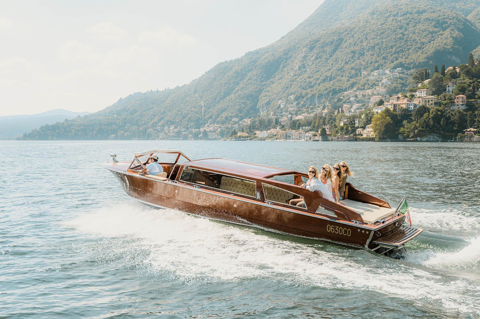Limousine boat available with all the comforts for a pleasant trip on the lake or even for transfers.