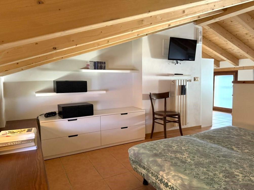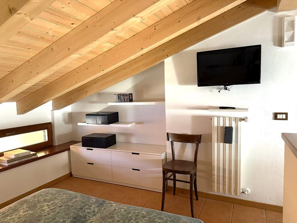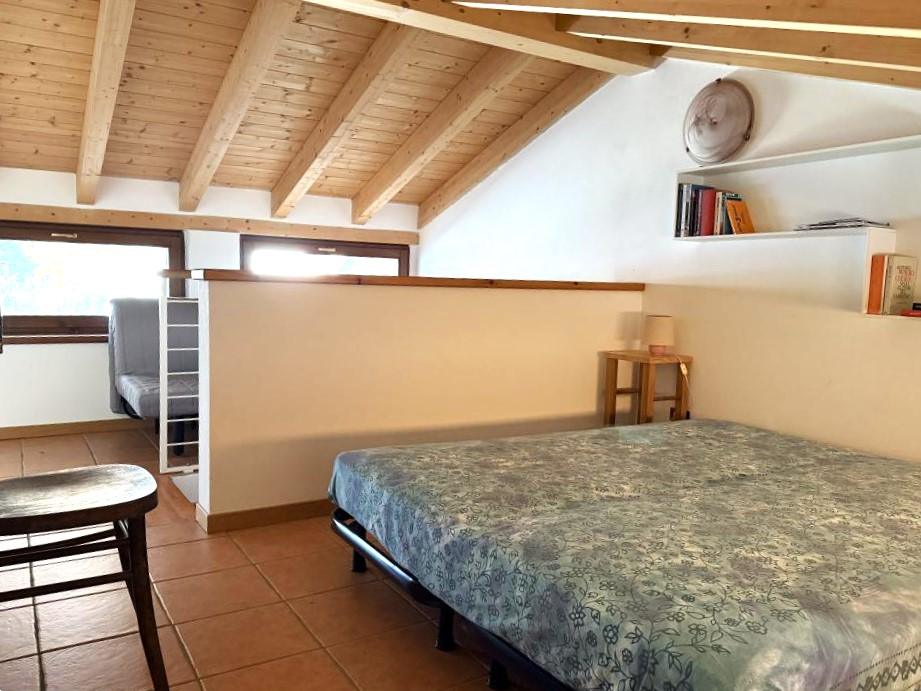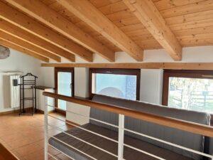 From the parking area, a charming stone-paved lane leads to the main entrance, preceded by a small courtyard decorated with a wall featuring a modern fresco depicting a traditional rural scene, a warm and welcoming detail that beautifully reflects the character of the place.Inside, the ground floor features a spacious living area with open-plan kitchen and a traditional fireplace, creating a cosy and convivial atmosphere. From here, one enters the master bedroom, which opens onto a panoramic terrace offering splendid views of the lake and surrounding hills, as well as a well-sized bathroom.