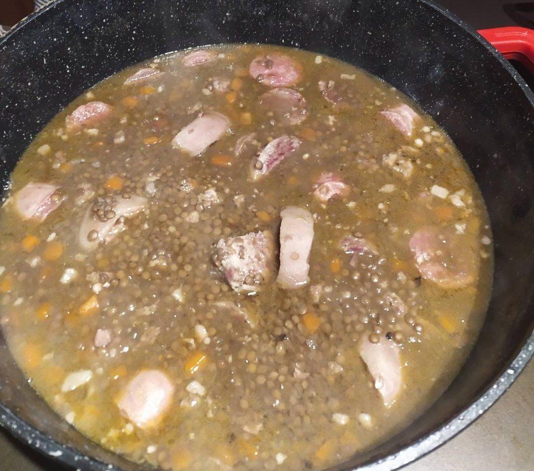 When cooked leave the cudegott to rest in it’s broth for 15 minutes. Serve sliced (about 1 centimeter thick) potatoes or lentils.